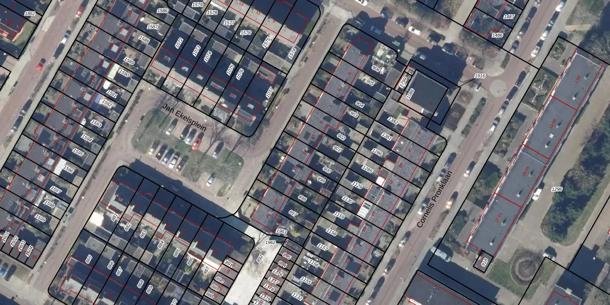 Gebruik de zoekbalk of klik op een perceel voor informatie over de adressen binnen dit perceel.