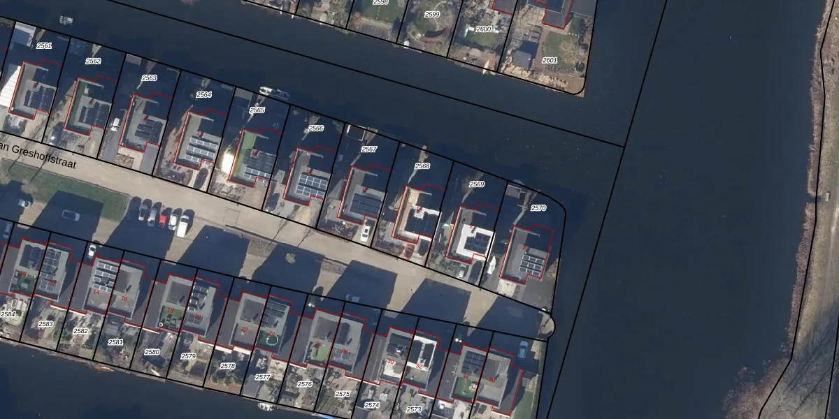 Jan Greshoffstraat 19 is gelegen op kadastraal perceel AMR01L2568. Deze kadastrale aanduiding is uniek en wordt gebruikt door het Kadaster om eigendomsrechten en andere zakelijke rechten vast te leggen. Het perceel maakt onderdeel uit van de kadastrale gemeente Alkmaar.