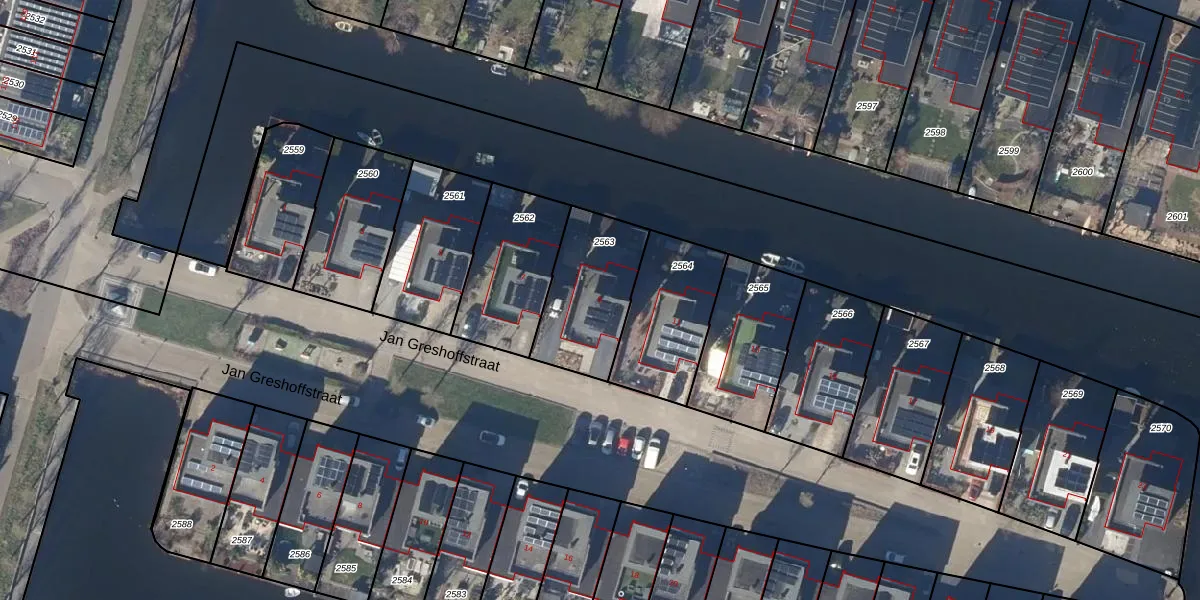 Het perceel waarop Jan Greshoffstraat 9 staat heeft een oppervlakte van 361 m². Dit is een groot perceel. De perceeloppervlakte wordt geregistreerd door het Kadaster. Gedetailleerde informatie over de maten van dit perceel kunt u vinden in het rapport Kadastrale kaart met maatvoering van Jan Greshoffstraat 9.