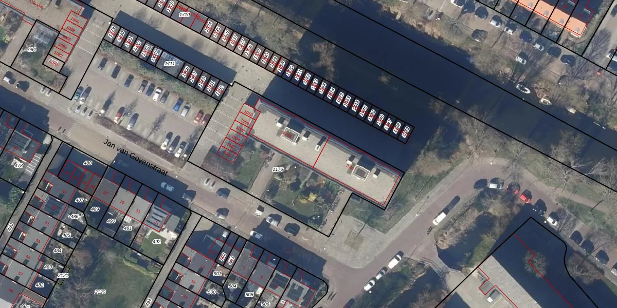 Het perceel waarop Jan van Goyenstraat 60 staat heeft een oppervlakte van 1721 m². Dit is een zeer groot perceel. De perceeloppervlakte wordt geregistreerd door het Kadaster. Gedetailleerde informatie over de maten van dit perceel kunt u vinden in het rapport Kadastrale kaart met maatvoering van Jan van Goyenstraat 60.
