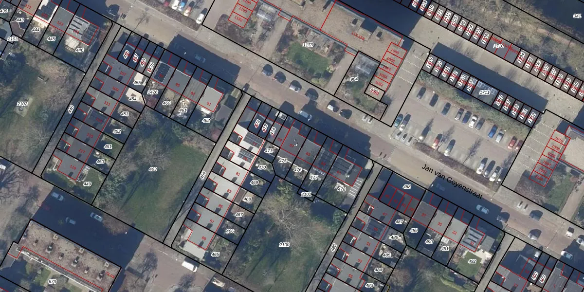 Het perceel waarop Jan van Goyenstraat 67 staat heeft een oppervlakte van 154 m². Dit is een middelgroot perceel. De perceeloppervlakte wordt geregistreerd door het Kadaster. Gedetailleerde informatie over de maten van dit perceel kunt u vinden in het rapport Kadastrale kaart met maatvoering van Jan van Goyenstraat 67.