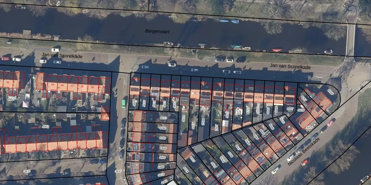 Gebruik de zoekbalk of klik op een perceel voor informatie over de adressen binnen dit perceel.
