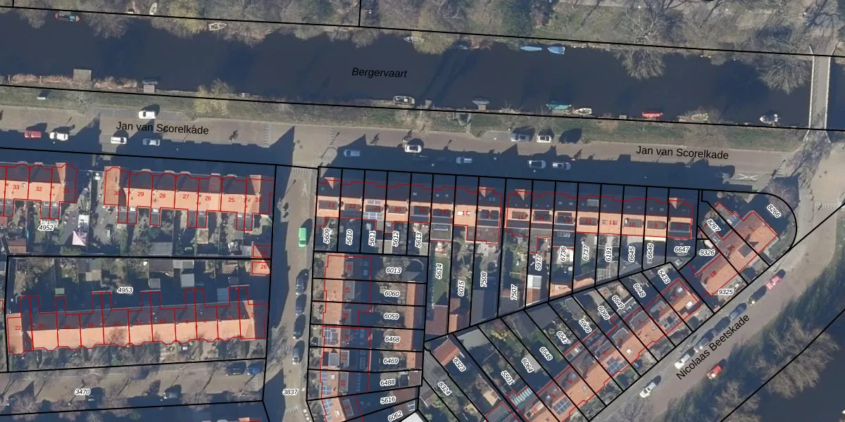 Gebruik de zoekbalk of klik op een perceel voor informatie over de adressen binnen dit perceel.