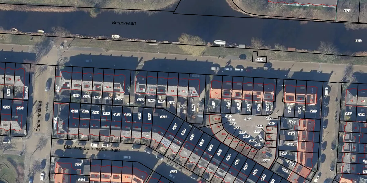 Gebruik de zoekbalk of klik op een perceel voor informatie over de adressen binnen dit perceel.