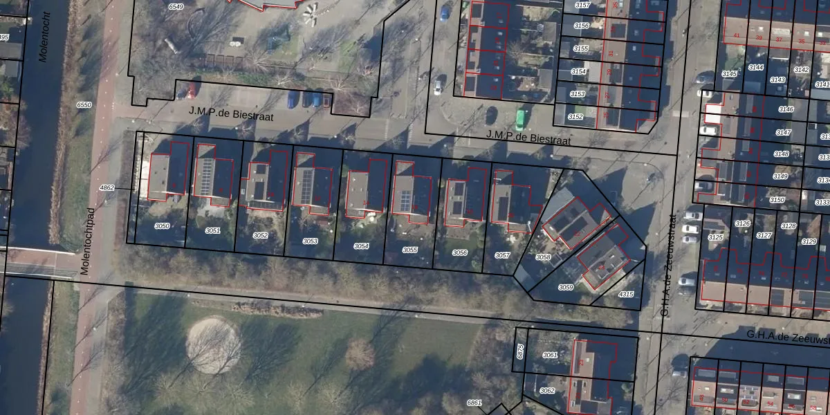 Het perceel waarop J.M.P.de Biestraat 16 staat heeft een oppervlakte van 323 m². Dit is een groot perceel. De perceeloppervlakte wordt geregistreerd door het Kadaster. Gedetailleerde informatie over de maten van dit perceel kunt u vinden in het rapport Kadastrale kaart met maatvoering van J.M.P.de Biestraat 16.