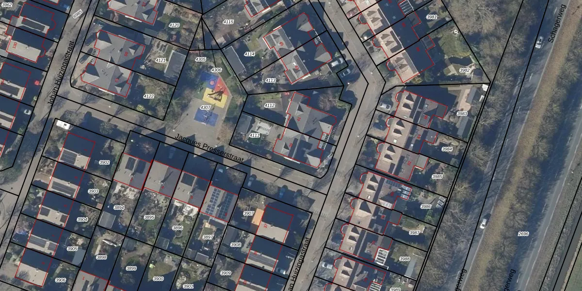 Gebruik de zoekbalk of klik op een perceel voor informatie over de adressen binnen dit perceel.