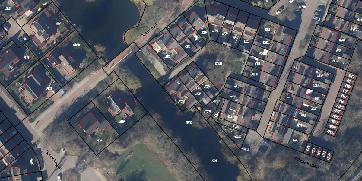 Het perceel waarop Jollenpad 20 staat heeft een oppervlakte van 194 m². Dit is een middelgroot perceel. De perceeloppervlakte wordt geregistreerd door het Kadaster. Gedetailleerde informatie over de maten van dit perceel kunt u vinden in het rapport Kadastrale kaart met maatvoering van Jollenpad 20.