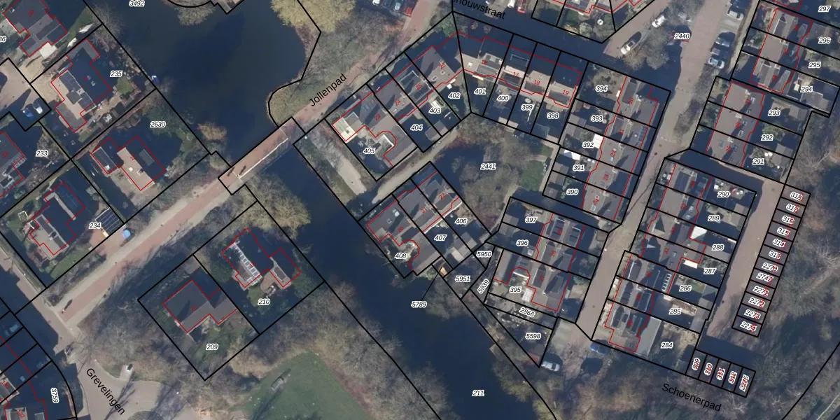Gebruik de zoekbalk of klik op een perceel voor informatie over de adressen binnen dit perceel.