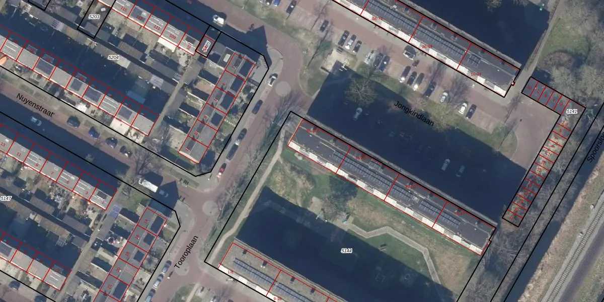 Het perceel waarop Jongkindlaan 101 staat heeft een oppervlakte van 4564 m². Dit is een zeer groot perceel. De perceeloppervlakte wordt geregistreerd door het Kadaster. Gedetailleerde informatie over de maten van dit perceel kunt u vinden in het rapport Kadastrale kaart met maatvoering van Jongkindlaan 101.
