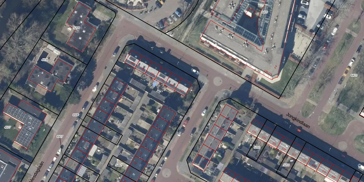 Het perceel waarop Jongkindlaan 127 staat heeft een oppervlakte van 7634 m². Dit is een zeer groot perceel. De perceeloppervlakte wordt geregistreerd door het Kadaster. Gedetailleerde informatie over de maten van dit perceel kunt u vinden in het rapport Kadastrale kaart met maatvoering van Jongkindlaan 127.