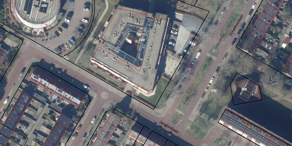 Het perceel waarop Jongkindlaan 166 staat heeft een oppervlakte van 5330 m². Dit is een zeer groot perceel. De perceeloppervlakte wordt geregistreerd door het Kadaster. Gedetailleerde informatie over de maten van dit perceel kunt u vinden in het rapport Kadastrale kaart met maatvoering van Jongkindlaan 166.