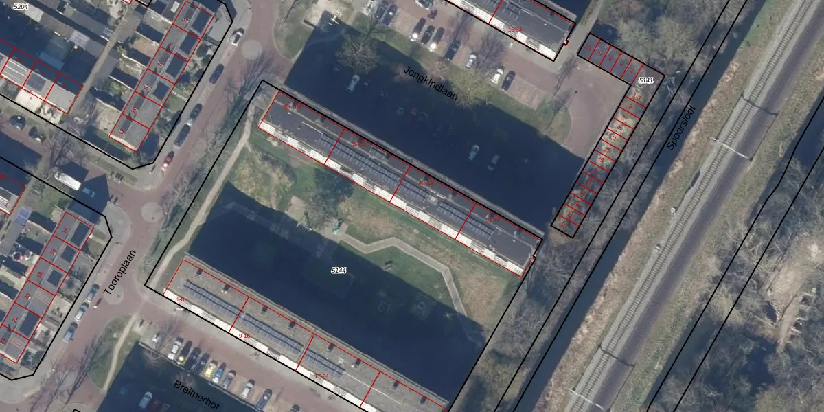 Het perceel waarop Jongkindlaan 59 staat heeft een oppervlakte van 4564 m². Dit is een zeer groot perceel. De perceeloppervlakte wordt geregistreerd door het Kadaster. Gedetailleerde informatie over de maten van dit perceel kunt u vinden in het rapport Kadastrale kaart met maatvoering van Jongkindlaan 59.
