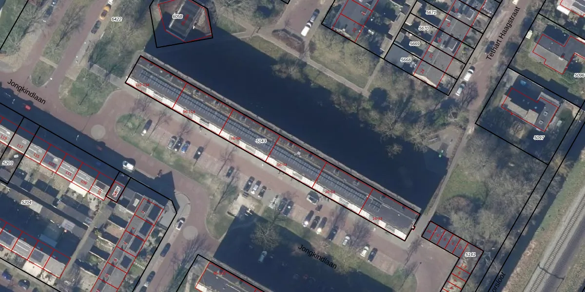 Het perceel waarop Jongkindlaan 72 staat heeft een oppervlakte van 1184 m². Dit is een zeer groot perceel. De perceeloppervlakte wordt geregistreerd door het Kadaster. Gedetailleerde informatie over de maten van dit perceel kunt u vinden in het rapport Kadastrale kaart met maatvoering van Jongkindlaan 72.