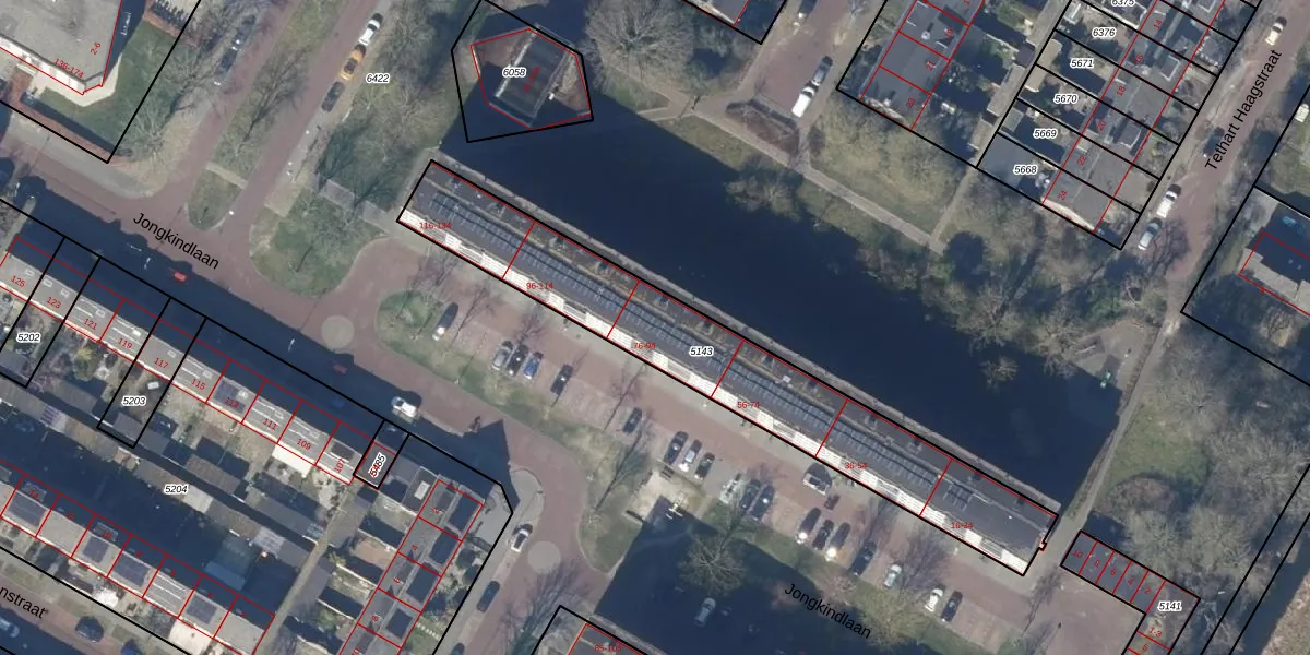 Het perceel waarop Jongkindlaan 84 staat heeft een oppervlakte van 1184 m². Dit is een zeer groot perceel. De perceeloppervlakte wordt geregistreerd door het Kadaster. Gedetailleerde informatie over de maten van dit perceel kunt u vinden in het rapport Kadastrale kaart met maatvoering van Jongkindlaan 84.