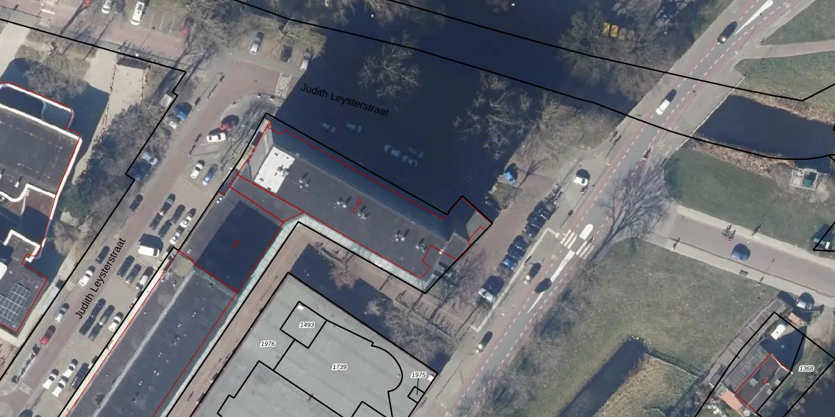 Het perceel waarop Judith Leysterstraat 15 staat heeft een oppervlakte van 4643 m². Dit is een zeer groot perceel. De perceeloppervlakte wordt geregistreerd door het Kadaster. Gedetailleerde informatie over de maten van dit perceel kunt u vinden in het rapport Kadastrale kaart met maatvoering van Judith Leysterstraat 15.
