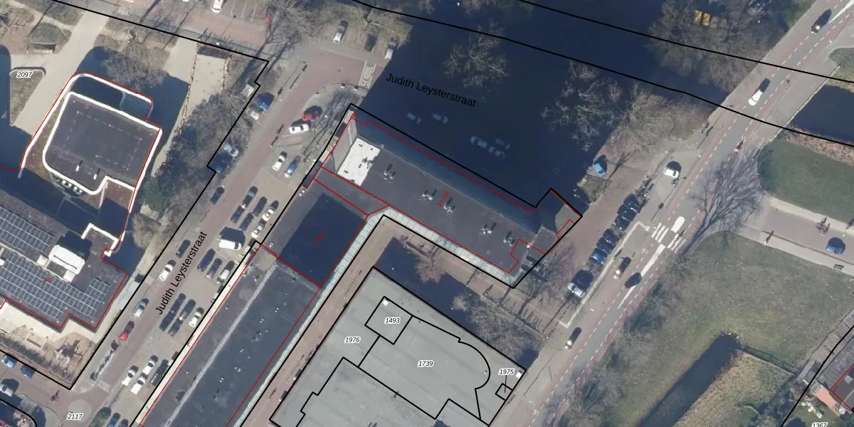 Het perceel waarop Judith Leysterstraat 151 staat heeft een oppervlakte van 4643 m². Dit is een zeer groot perceel. De perceeloppervlakte wordt geregistreerd door het Kadaster. Gedetailleerde informatie over de maten van dit perceel kunt u vinden in het rapport Kadastrale kaart met maatvoering van Judith Leysterstraat 151.