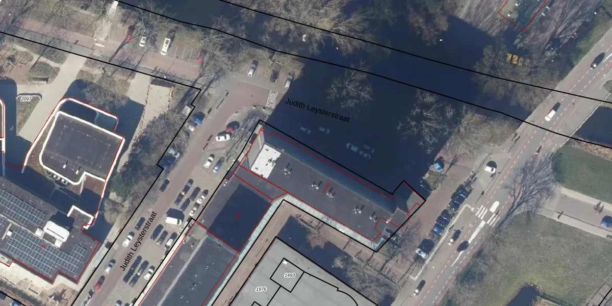 Het perceel waarop Judith Leysterstraat 23 staat heeft een oppervlakte van 4643 m². Dit is een zeer groot perceel. De perceeloppervlakte wordt geregistreerd door het Kadaster. Gedetailleerde informatie over de maten van dit perceel kunt u vinden in het rapport Kadastrale kaart met maatvoering van Judith Leysterstraat 23.