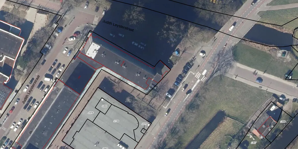 Het perceel waarop Judith Leysterstraat 37 staat heeft een oppervlakte van 4643 m². Dit is een zeer groot perceel. De perceeloppervlakte wordt geregistreerd door het Kadaster. Gedetailleerde informatie over de maten van dit perceel kunt u vinden in het rapport Kadastrale kaart met maatvoering van Judith Leysterstraat 37.