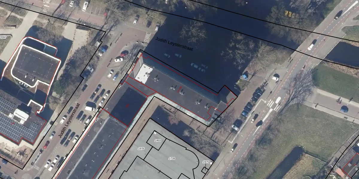 Het perceel waarop Judith Leysterstraat 55 staat heeft een oppervlakte van 4643 m². Dit is een zeer groot perceel. De perceeloppervlakte wordt geregistreerd door het Kadaster. Gedetailleerde informatie over de maten van dit perceel kunt u vinden in het rapport Kadastrale kaart met maatvoering van Judith Leysterstraat 55.