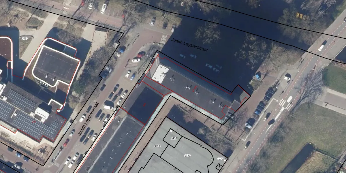 Het perceel waarop Judith Leysterstraat 83 staat heeft een oppervlakte van 4643 m². Dit is een zeer groot perceel. De perceeloppervlakte wordt geregistreerd door het Kadaster. Gedetailleerde informatie over de maten van dit perceel kunt u vinden in het rapport Kadastrale kaart met maatvoering van Judith Leysterstraat 83.