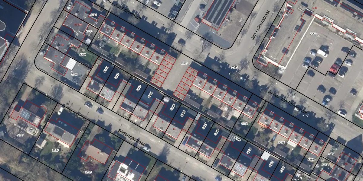 Het perceel waarop Justus van Effenstraat 38 staat heeft een oppervlakte van 2192 m². Dit is een zeer groot perceel. De perceeloppervlakte wordt geregistreerd door het Kadaster. Gedetailleerde informatie over de maten van dit perceel kunt u vinden in het rapport Kadastrale kaart met maatvoering van Justus van Effenstraat 38.