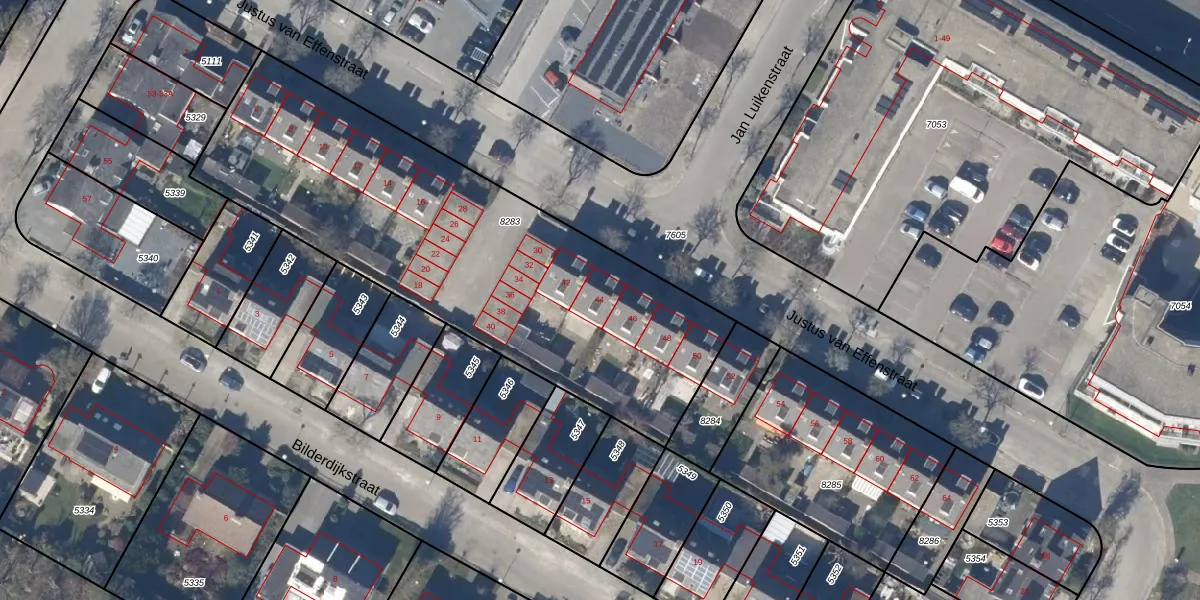 Het perceel waarop Justus van Effenstraat 44 staat heeft een oppervlakte van 2192 m². Dit is een zeer groot perceel. De perceeloppervlakte wordt geregistreerd door het Kadaster. Gedetailleerde informatie over de maten van dit perceel kunt u vinden in het rapport Kadastrale kaart met maatvoering van Justus van Effenstraat 44.