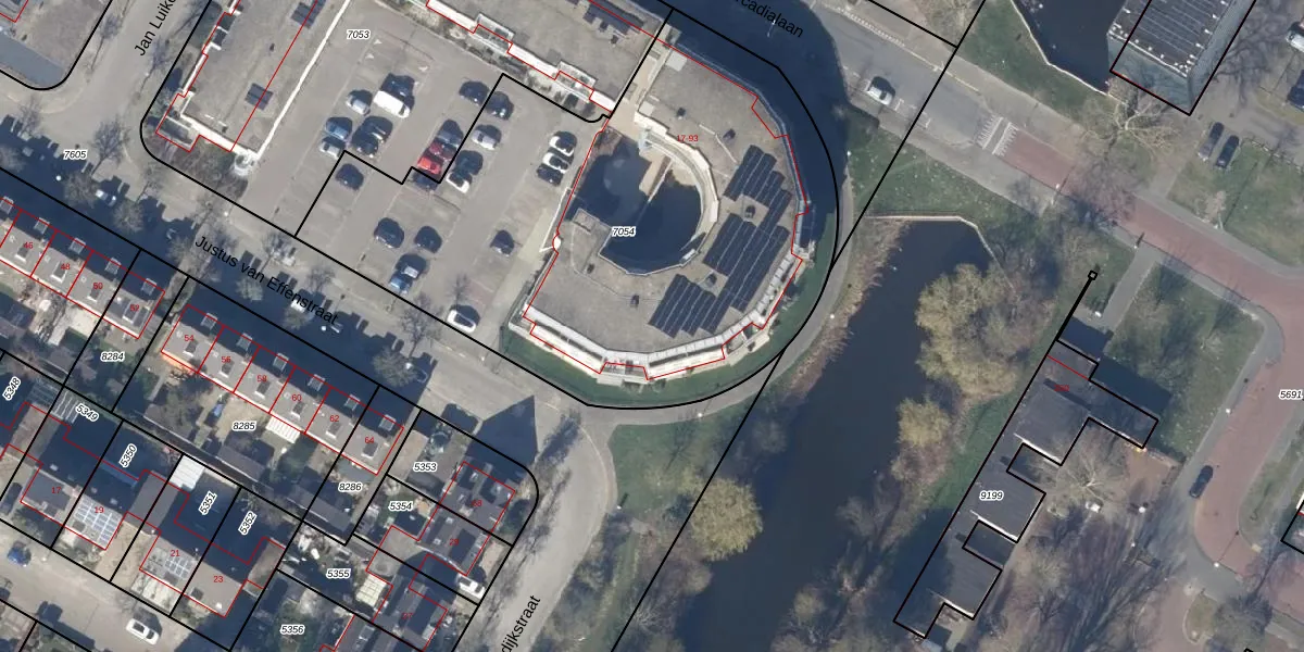 Het perceel waarop Justus van Effenstraat 49 staat heeft een oppervlakte van 3030 m². Dit is een zeer groot perceel. De perceeloppervlakte wordt geregistreerd door het Kadaster. Gedetailleerde informatie over de maten van dit perceel kunt u vinden in het rapport Kadastrale kaart met maatvoering van Justus van Effenstraat 49.