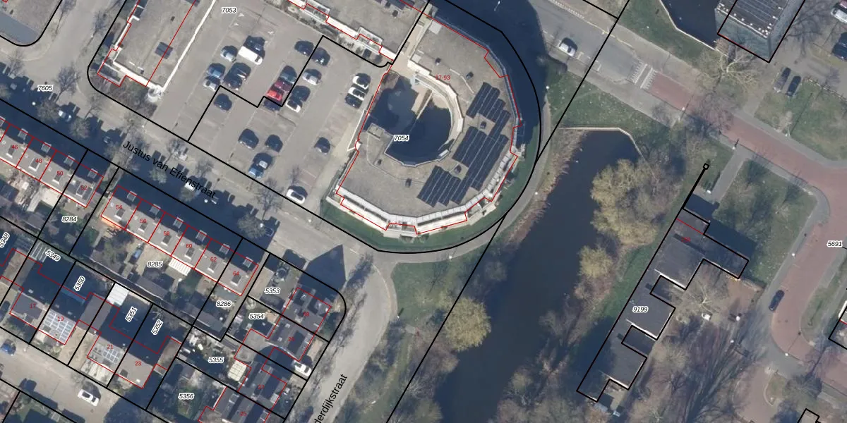 Het perceel waarop Justus van Effenstraat 69 staat heeft een oppervlakte van 3030 m². Dit is een zeer groot perceel. De perceeloppervlakte wordt geregistreerd door het Kadaster. Gedetailleerde informatie over de maten van dit perceel kunt u vinden in het rapport Kadastrale kaart met maatvoering van Justus van Effenstraat 69.