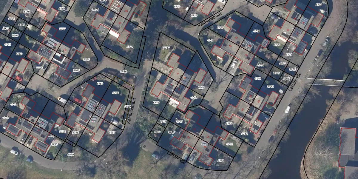 Gebruik de zoekbalk of klik op een perceel voor informatie over de adressen binnen dit perceel.