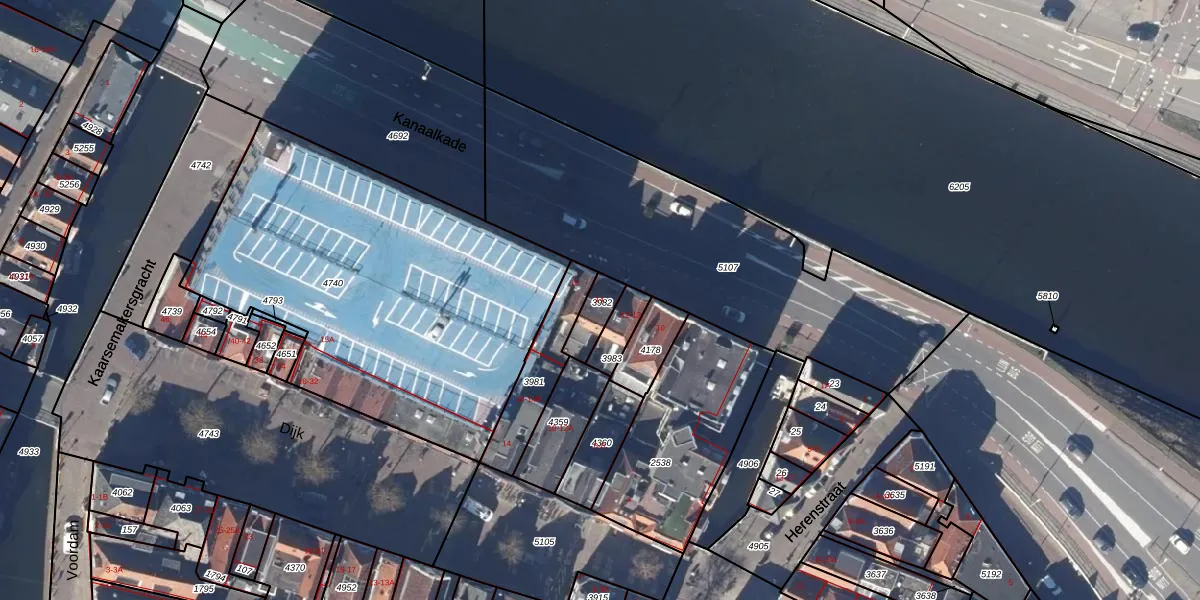 Het perceel waarop Kanaalkade 14 staat heeft een oppervlakte van 67 m². Dit is een klein perceel. De perceeloppervlakte wordt geregistreerd door het Kadaster. Gedetailleerde informatie over de maten van dit perceel kunt u vinden in het rapport Kadastrale kaart met maatvoering van Kanaalkade 14.