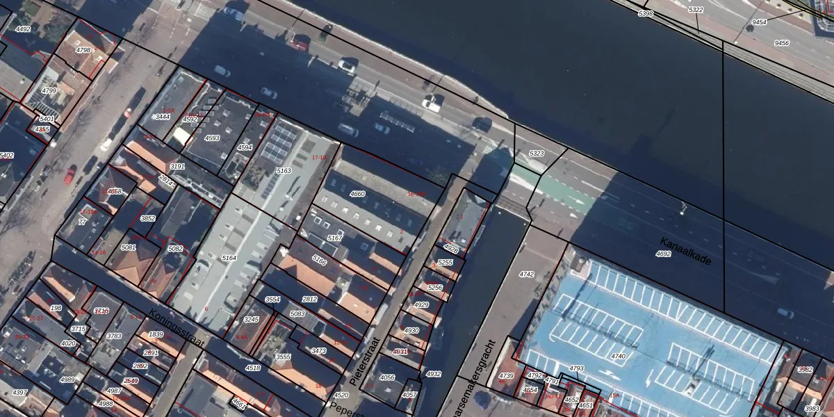 Het perceel waarop Kanaalkade 16-C-5 staat heeft een oppervlakte van 455 m². Dit is een groot perceel. De perceeloppervlakte wordt geregistreerd door het Kadaster. Gedetailleerde informatie over de maten van dit perceel kunt u vinden in het rapport Kadastrale kaart met maatvoering van Kanaalkade 16-C-5.
