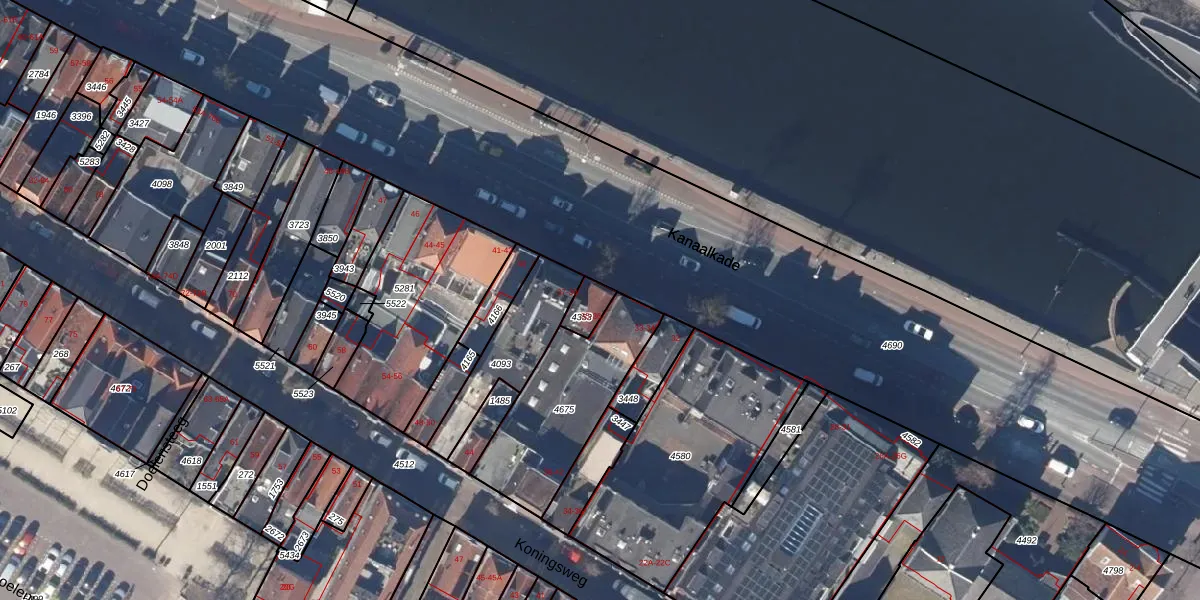 Het perceel waarop Kanaalkade 36 staat heeft een oppervlakte van 50 m². Dit is een klein perceel. De perceeloppervlakte wordt geregistreerd door het Kadaster. Gedetailleerde informatie over de maten van dit perceel kunt u vinden in het rapport Kadastrale kaart met maatvoering van Kanaalkade 36.