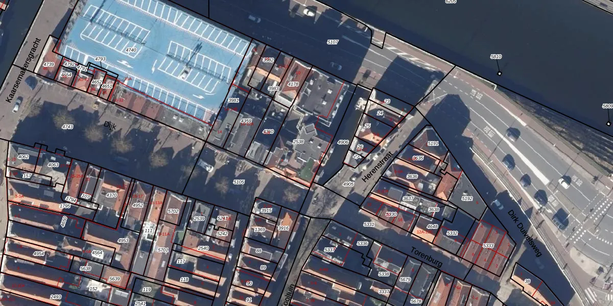 Het perceel waarop Kanaalkade 4-A staat heeft een oppervlakte van 613 m². Dit is een groot perceel. De perceeloppervlakte wordt geregistreerd door het Kadaster. Gedetailleerde informatie over de maten van dit perceel kunt u vinden in het rapport Kadastrale kaart met maatvoering van Kanaalkade 4-A.