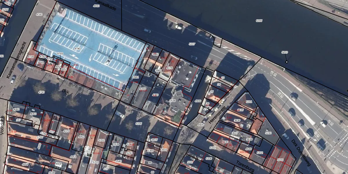 Het perceel waarop Kanaalkade 9 staat heeft een oppervlakte van 613 m². Dit is een groot perceel. De perceeloppervlakte wordt geregistreerd door het Kadaster. Gedetailleerde informatie over de maten van dit perceel kunt u vinden in het rapport Kadastrale kaart met maatvoering van Kanaalkade 9.