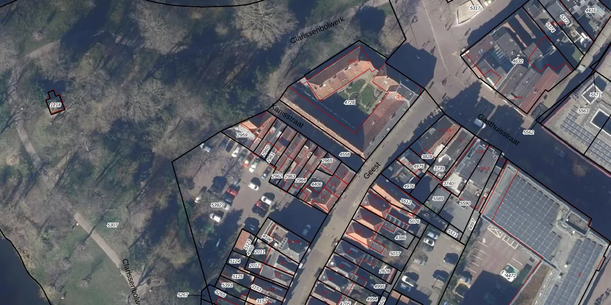 Gebruik de zoekbalk of klik op een perceel voor informatie over de adressen binnen dit perceel.