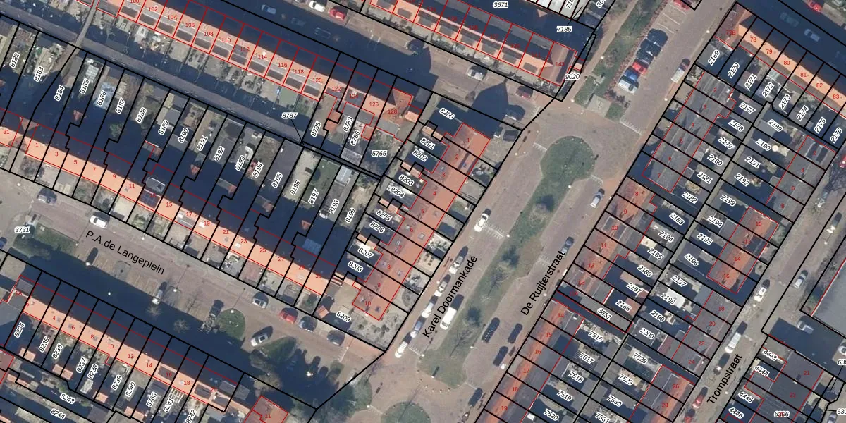 Gebruik de zoekbalk of klik op een perceel voor informatie over de adressen binnen dit perceel.