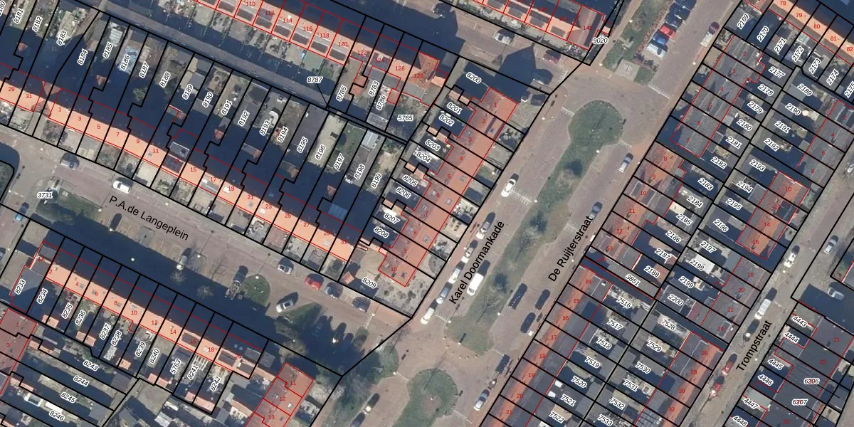 Gebruik de zoekbalk of klik op een perceel voor informatie over de adressen binnen dit perceel.