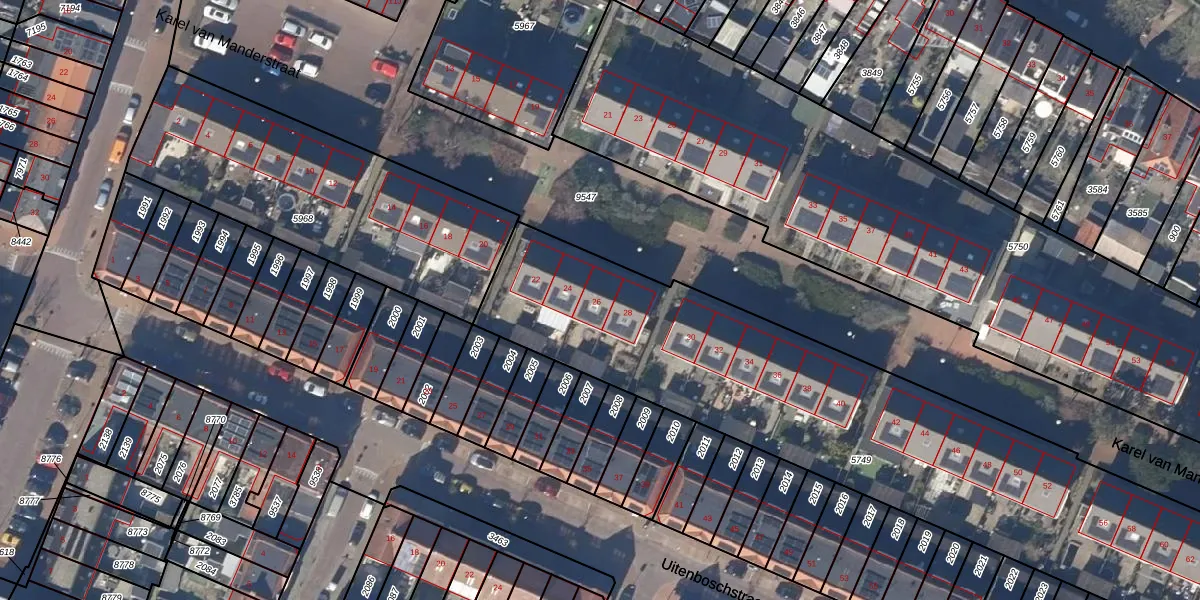 Het perceel waarop Karel van Manderstraat 26 staat heeft een oppervlakte van 2928 m². Dit is een zeer groot perceel. De perceeloppervlakte wordt geregistreerd door het Kadaster. Gedetailleerde informatie over de maten van dit perceel kunt u vinden in het rapport Kadastrale kaart met maatvoering van Karel van Manderstraat 26.