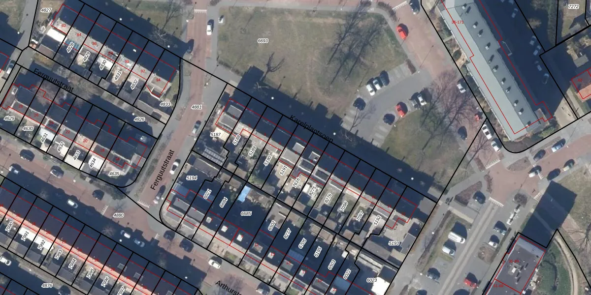 Het perceel waarop Karelplantsoen 5 staat heeft een oppervlakte van 155 m². Dit is een middelgroot perceel. De perceeloppervlakte wordt geregistreerd door het Kadaster. Gedetailleerde informatie over de maten van dit perceel kunt u vinden in het rapport Kadastrale kaart met maatvoering van Karelplantsoen 5.