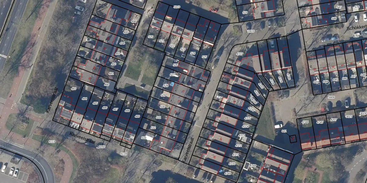 Gebruik de zoekbalk of klik op een perceel voor informatie over de adressen binnen dit perceel.