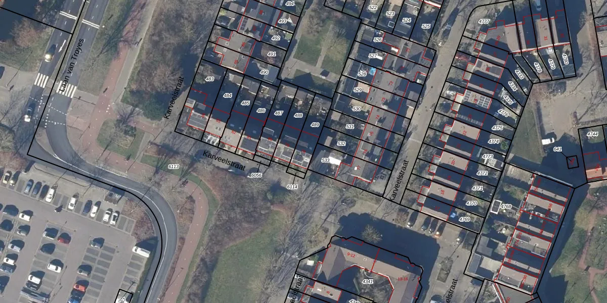 Het perceel waarop Karveelstraat 78 staat heeft een oppervlakte van 161 m². Dit is een middelgroot perceel. De perceeloppervlakte wordt geregistreerd door het Kadaster. Gedetailleerde informatie over de maten van dit perceel kunt u vinden in het rapport Kadastrale kaart met maatvoering van Karveelstraat 78.