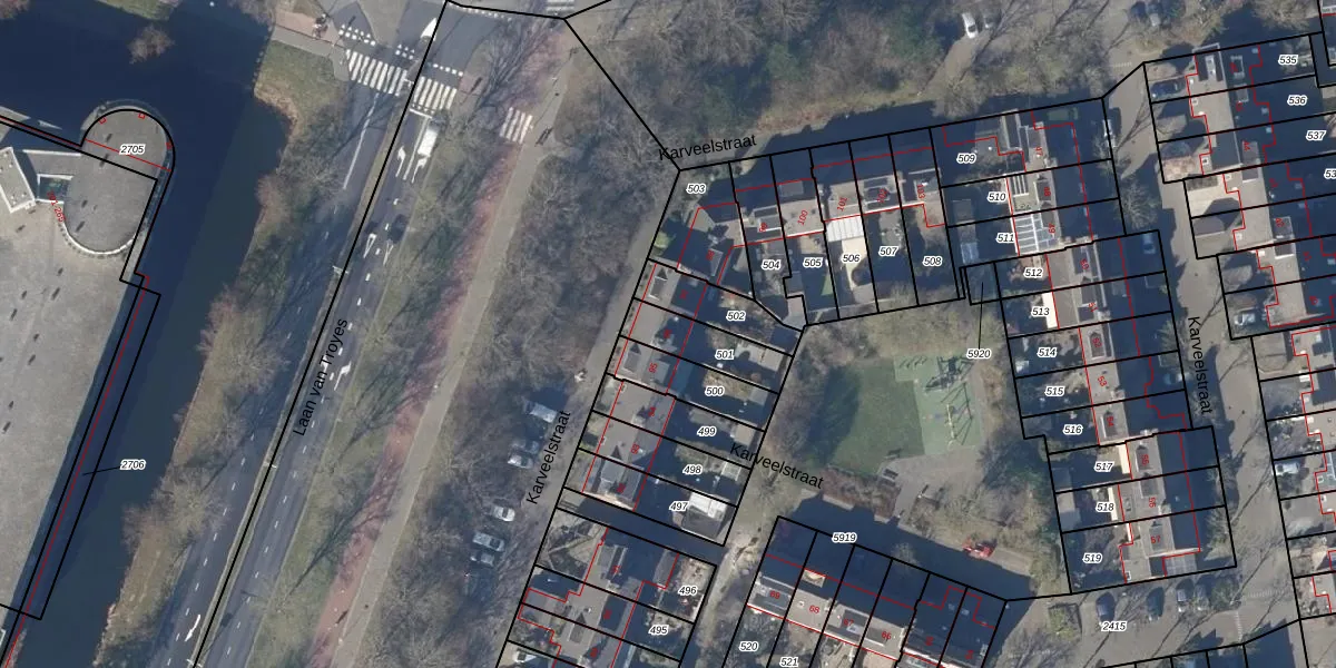 Het perceel waarop Karveelstraat 96 staat heeft een oppervlakte van 153 m². Dit is een middelgroot perceel. De perceeloppervlakte wordt geregistreerd door het Kadaster. Gedetailleerde informatie over de maten van dit perceel kunt u vinden in het rapport Kadastrale kaart met maatvoering van Karveelstraat 96.