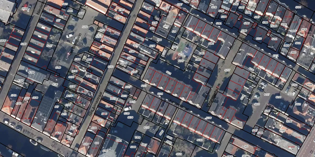 Het perceel waarop Keizerstraat 22 staat heeft een oppervlakte van 741 m². Dit is een groot perceel. De perceeloppervlakte wordt geregistreerd door het Kadaster. Gedetailleerde informatie over de maten van dit perceel kunt u vinden in het rapport Kadastrale kaart met maatvoering van Keizerstraat 22.
