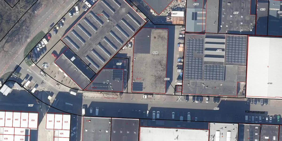 Het perceel waarop Kitmanstraat 1-G staat heeft een oppervlakte van 1902 m². Dit is een zeer groot perceel. De perceeloppervlakte wordt geregistreerd door het Kadaster. Gedetailleerde informatie over de maten van dit perceel kunt u vinden in het rapport Kadastrale kaart met maatvoering van Kitmanstraat 1-G.