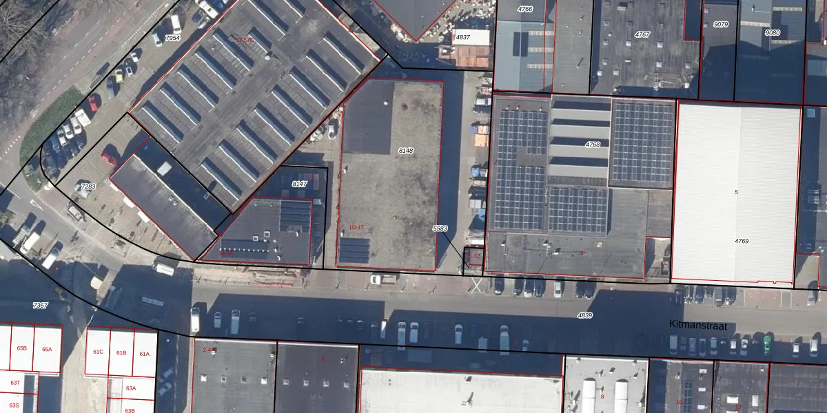Het perceel waarop Kitmanstraat 1-M staat heeft een oppervlakte van 1902 m². Dit is een zeer groot perceel. De perceeloppervlakte wordt geregistreerd door het Kadaster. Gedetailleerde informatie over de maten van dit perceel kunt u vinden in het rapport Kadastrale kaart met maatvoering van Kitmanstraat 1-M.