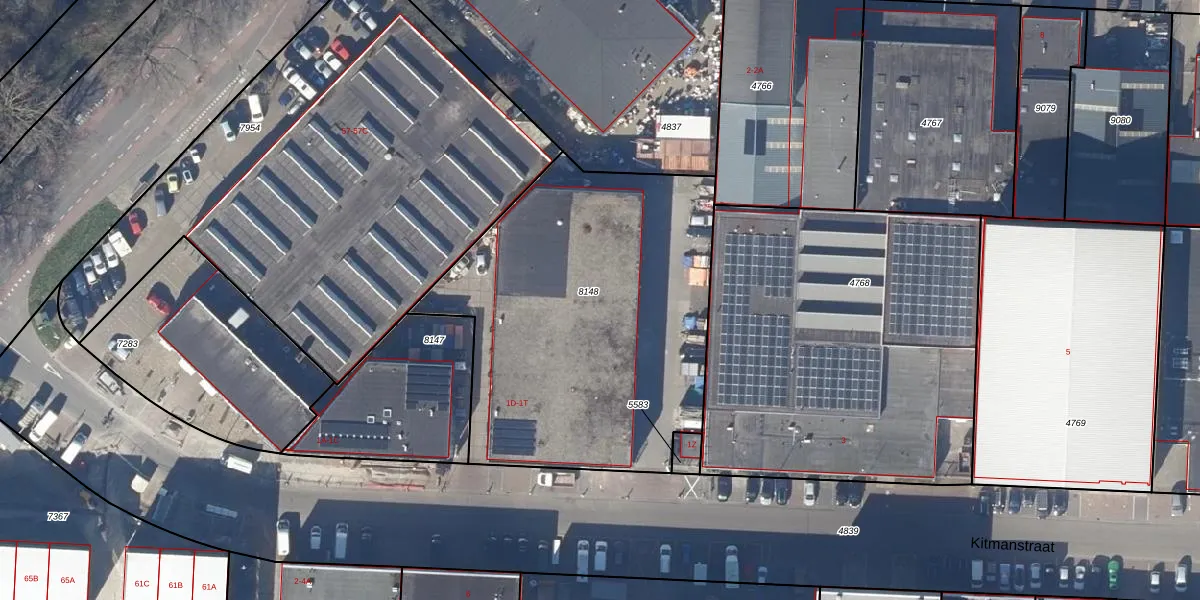 Het perceel waarop Kitmanstraat 1-P staat heeft een oppervlakte van 1902 m². Dit is een zeer groot perceel. De perceeloppervlakte wordt geregistreerd door het Kadaster. Gedetailleerde informatie over de maten van dit perceel kunt u vinden in het rapport Kadastrale kaart met maatvoering van Kitmanstraat 1-P.