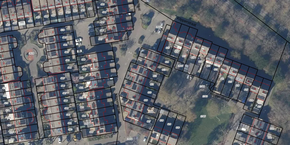 Gebruik de zoekbalk of klik op een perceel voor informatie over de adressen binnen dit perceel.