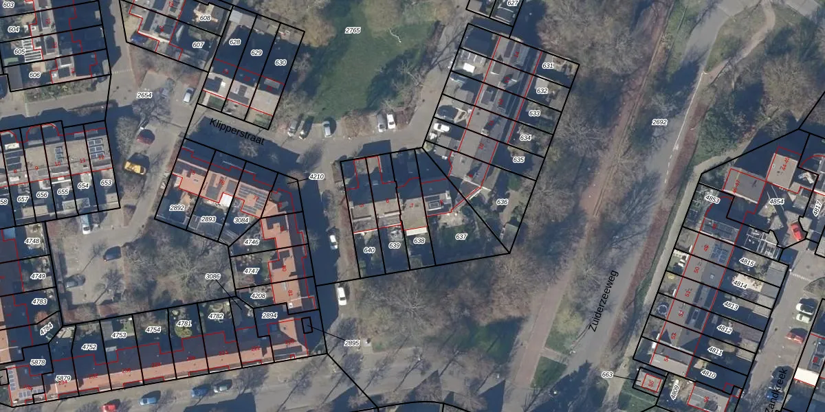 Gebruik de zoekbalk of klik op een perceel voor informatie over de adressen binnen dit perceel.