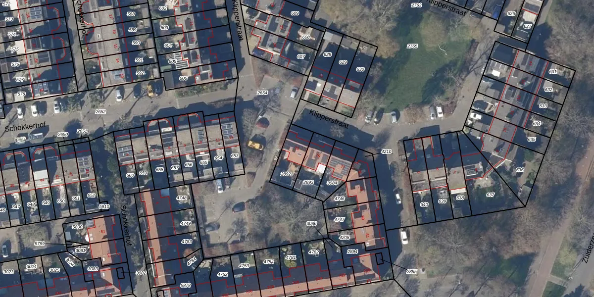 Gebruik de zoekbalk of klik op een perceel voor informatie over de adressen binnen dit perceel.