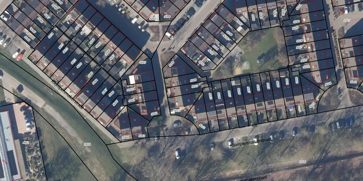 Het perceel waarop Klompenmakerstraat 5 staat heeft een oppervlakte van 119 m². Dit is een middelgroot perceel. De perceeloppervlakte wordt geregistreerd door het Kadaster. Gedetailleerde informatie over de maten van dit perceel kunt u vinden in het rapport Kadastrale kaart met maatvoering van Klompenmakerstraat 5.